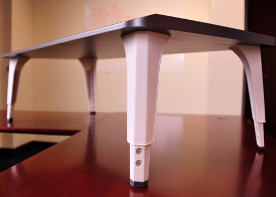 Stand-Up Kit Desk es un tablero de madera MDF (de diferentes acabados) que tiene las esquinas redondeadas y el borde frontal biselado, un detalle que la hace más ergonómica. Sus patas son de plástico ABS, y regulables en altura (de 30 a 43cm). Su diseñador (Pace McCulloch) inició una campaña en Kickstarter con el fin de recaudar fondos para iniciar su fabricación, pero NO tuvo éxito. Aquí tres fotos de Stand-Up Kit Desk: