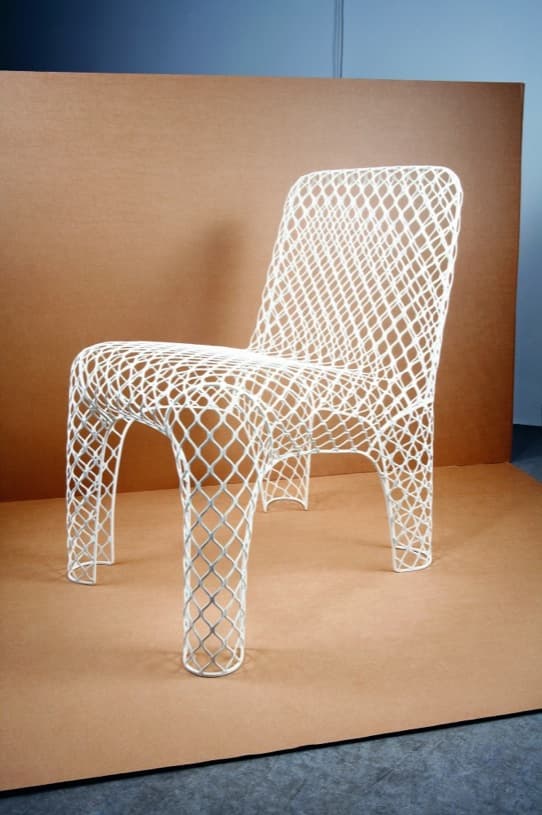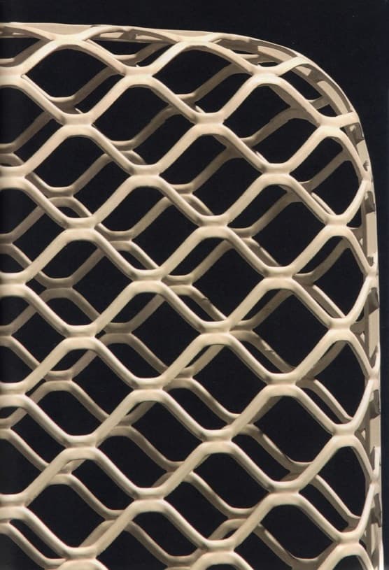 En la Silla Mesh todo se resume en su estructura. Y es que forma también la superficie que queda en contacto con el usuario, de tal manera que todo lo que se ve es lo que hay. Está fabricada cortando los patrones de una plancha de metal expandido, deformándolos sobre un molde. Luego se sueldan para que el resultado final adquiera la resistencia necesaria.
