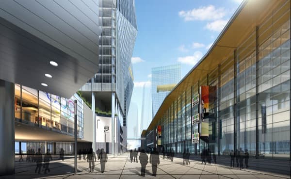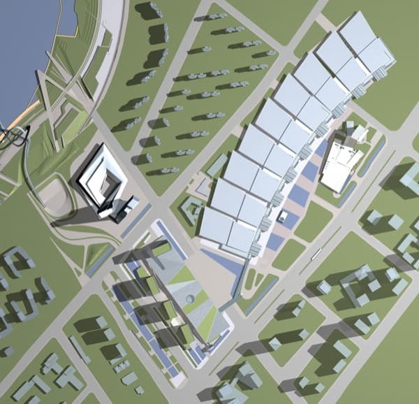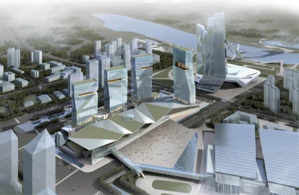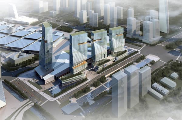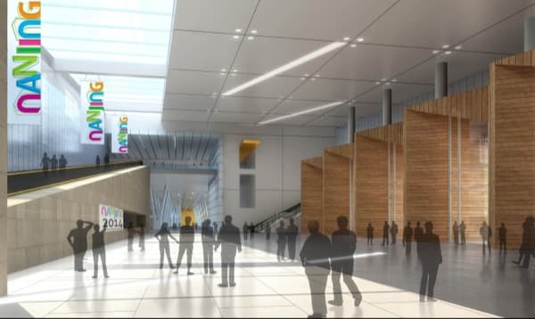 Este diseño complementará el plan urbanístico original hacia el sur, al tiempo que enfatiza el Eje Olímpico hacia el Distrito Hexi. Crea una serie de recorridos peatonales para que los residentes y visitantes a la zona puedan disfrutar de un entorno urbano dinámico. Lo hace apoyando las aspiraciones de los Juegos Olímpicos de la Juventud del 2014, a celebrar en dicha ciudad. El diseño ha sido realizado por tvsdesign, y pretende aumentar el espacio de exposiciones, a la vez que actúa como complemento de locales comerciales, ocio, y oficinas.