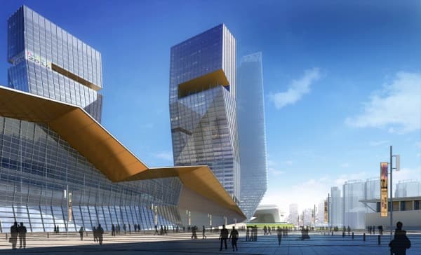 Estos renders corresponden al proyecto ganador del concurso de ideas para la ampliación del Nanjing International Expo Center (NIEC). Está en la ciudad china de Nankín, y es un complejo que actualmente ocupa una extensión de 20,23 hectáreas. Por eso es el mayor centro de congresos y exposiciones de la provincia de Jiangsu.