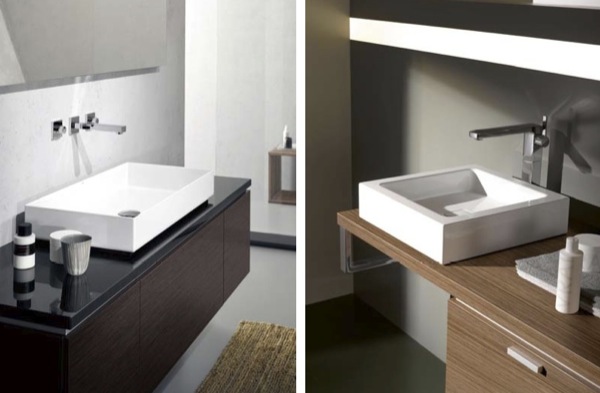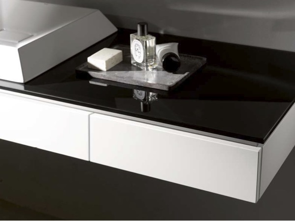El fabricante aporta en su Sistema de Componentes de 40 colores, una buena variedad de materiales y superficies, para que sea sencillo crear diferentes configuraciones. De esta manera será posible tener el lavabo empotrado, sobre la encimera. También se puede tener suspendido, completándolo con la elección apropiada de muebles, accesorios, e iluminación. Las superficies de vidrio satinado y vidrio brillante pueden tener aquí un papel protagonista en las encimeras. Están disponibles tanto en tono blanco, como en verdes, grises, o incluso marrones.