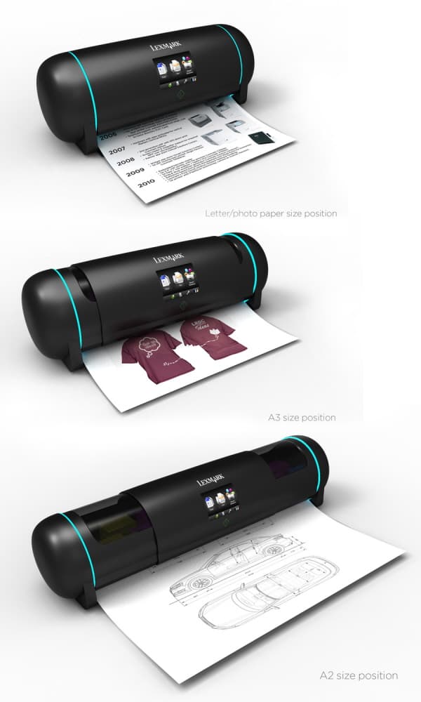 Dicho esto, es bueno saber que hay quien se preocupa por ofrecer una impresora que resuelva además el lío que hasta ahora se ha tenido con los formatos de papel. Este diseño es por ahora un concepto, pero solucionaría en un único aparato la impresión en papel de formato A4, A3, y A2. Sería el ‘todo en uno’ en impresión, la solución perfecta para muchos profesionales, ocupando poco espacio. Tiene forma de tubo retráctil que se ajusta a cada uno de los tamaños estándar más utilizados.