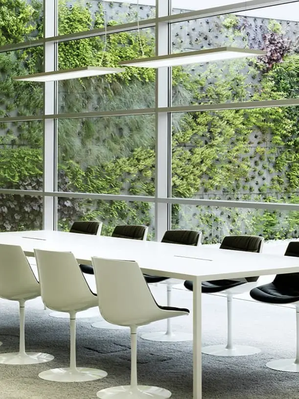 Este estupendo patio pertenece a un edificio al sur de Graz (Austria), el Xal Competence Center, un laboratorio único y centro de investigación donde trabajan unos 70 técnicos y diseñadores altamente cualificados. Es un buen ejemplo de decoración de interiores, pero también de exteriores, a juzgar por el elegante muro con vegetación que han diseñado en este moderno patio zen, donde con muy pocos elementos se alcanza el equilibrio.