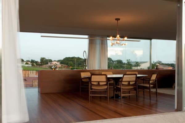Viendo las fotos de esta vivienda, es fácil acordarse de otros modelos de casas. Esto es algo que no debe extrañarnos porque todas han sido proyectadas por el arquitecto Marcio Kogan. Este profesional de la arquitectura no tiene ningún reparo en utilizar una y otra vez volúmenes y lenguajes de fachadas similares. En esta ocasión se trata de Osler House, situada cerca del Lago Paranoá (Brasilia).