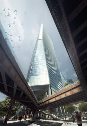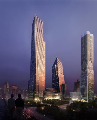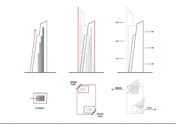 La primera torre en construirse tendrá una altura de 273 metros, y tiene prevista su finalización para el 2015. Lo desarrolló Kohn Pederson Fox Associates (KPF), quien junto a ella levantará otra similar. Ambas torres tienen algunas fachadas inclinadas, y una particular forma de relacionarse entre sí, y con la ciudad.