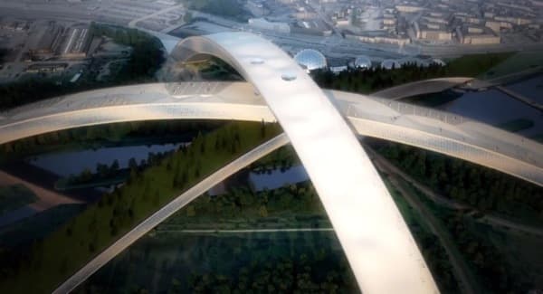 Recordemos que los tres arcos de esta megaestructura se inscriben en un círculo de 700 metros de diámetro. Y que alcanza una altura de 110 metros el arco superior. Aparte de la atención que pueda despertar este vídeo por los detalles sobre la geometría y funcionamiento del proyecto, también se desvelan otros datos curiosos: