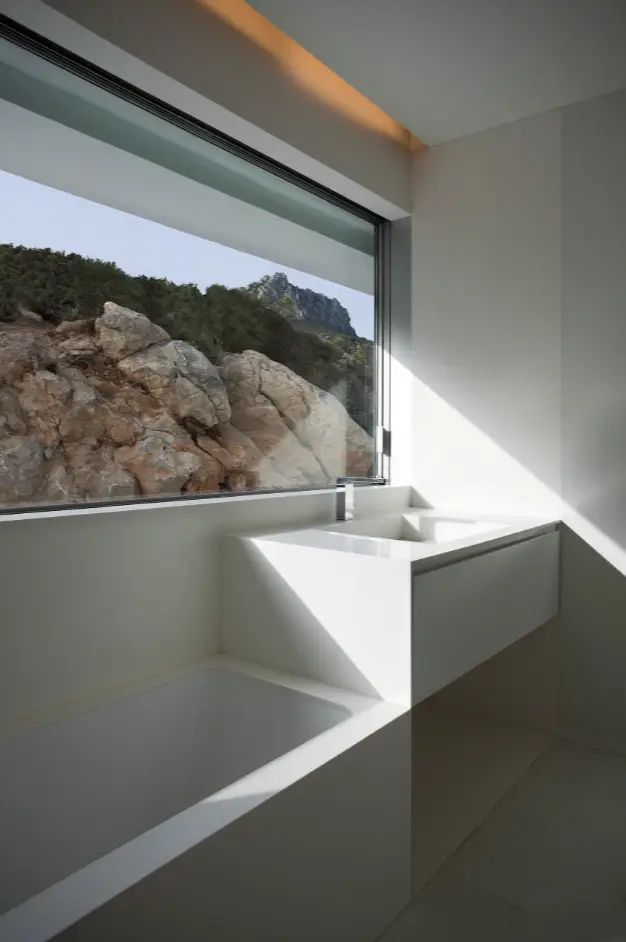 Anteriormente ya habíamos evaluado proyectos de este arquitecto. Y ha vuelto a ocurrir: esta obra merece un lugar en nuestra lista de casas modernas impresionantes. La Casa del Acantilado es un ejemplo de cómo el minimalismo y el blanco pueden crear una armoniosa y espectacular respuesta arquitectónica.