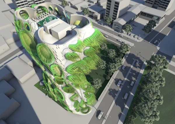 Esta arquitectura orgánica, en forma de bloque de pisos, es un proyecto de B + U Architects.