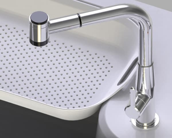 - La posición centrada del grifo da servicio a todas las áreas de trabajo.