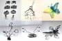 En las imágenes se pueden ver algunos objetos conseguidos dibujando primero las partes sobre una hoja de papel (seguro que aparecerán miles de plantillas en internet!). Luego se quita el papel, y se unen los diferentes trozos, hasta conseguir el objeto tridimensional deseado (ejemplo de la Torre Eiffel).