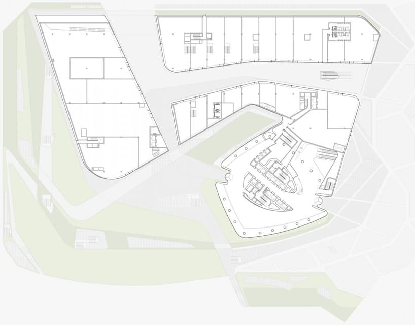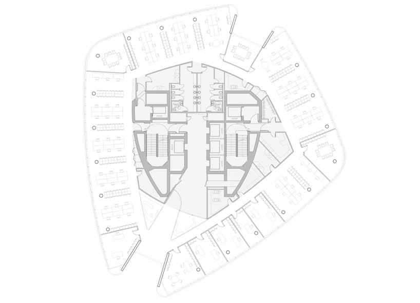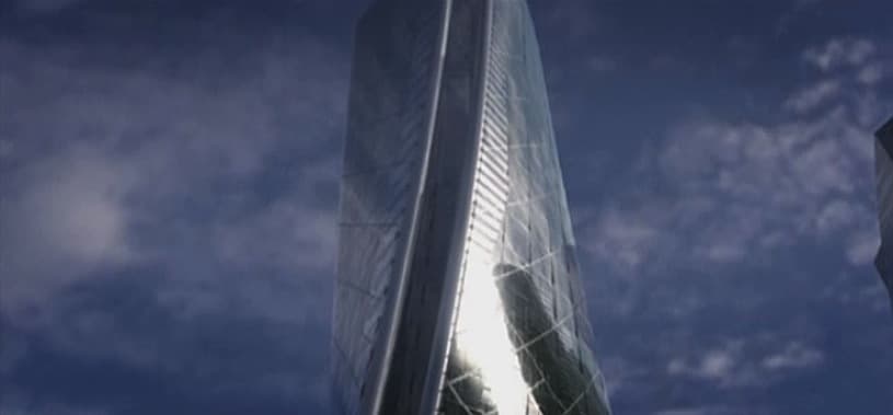 Cada uno de estos edificios se alza de una manera diferente, siendo el de Arata Isozaki el único que tiene sus fachadas ‘rectas y verticales’, pero anecdóticamente será recordado como el primer rascacielos de la historia que nació apuntalado. Eso se explicó en nuestra crítica sobre su diseño, publicada meses atrás.