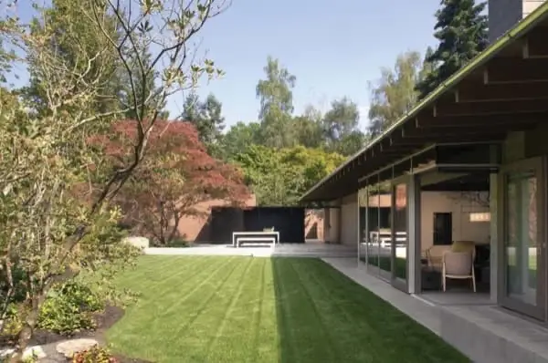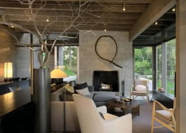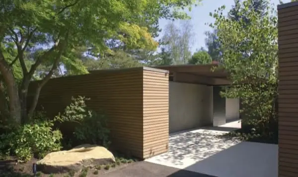 Podría parecer que esta encantadora y moderna vivienda está en medio de un bosque. Pero no, se construyó en una zona urbana de Medina (Washington, EE.UU.), para una pareja de jubilados. Sus dueños deseaban llevar un vida sencilla, sin los excesos de las lujosas casas del barrio. Por ese motivo el diseño de esta Cabaña Urbana se aproxima más al de refugio que al de vivienda. Su programa se redujo al mínimo, y está desarrollado en una sola planta.