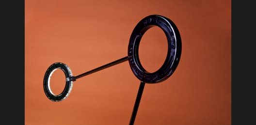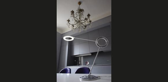 Cada una de las lámparas Amuleto está compuesta por tres círculos: uno en la base, un aro central, y otro en la corona que contiene la luz LED. La disposición de sus articulaciones hace posible que la luz se pueda colocar a cualquier altura, posición, y orientación. Se puede elegir en una amplia combinación de colores de sus brazos y aros, o bien una versión monocromática.