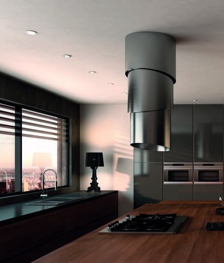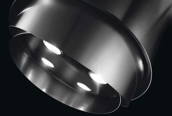 Dentro de la colección F-Light de extractores de aire de la firma Faber, nos hemos detenido en su modelo PAREO. Por su forma cilíndrica, se trata de una campana de aire pensada para colocar sobre islas de cocina. Se ve como una moderna escultura, y está compuesta por tres elementos que se acoplan telescópicamente. Por eso cuando está funcionando lo hace en una posición cercana a la placa de cocinado. Esta campana extractora retráctil se fabrica en acero inoxidable, y dispone de un filtro metálico autoportante.