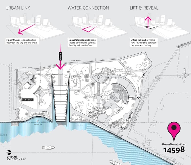 La idea ganadora fue la titulada «Miami Lift«, de Studio Dror (EE.UU.). Aprovecha la fama que tiene esta ciudad como lugar de vacaciones, por sus playas, puertos, y sus cruceros. El diseño está concebido como un único volumen, compuesto por una gigantesca ménsula de sección triangular (variable) que se alza desde el suelo. En su interior incluye un programa con áreas para exposiciones, biblioteca, teatro, restaurante, y tiendas. Todo ello con vistas panorámicas a la ciudad y el océano.
