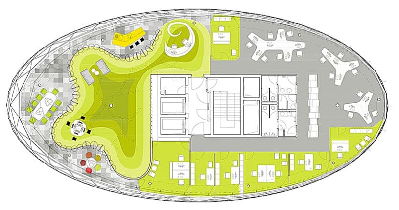 Estas fotos y planos corresponden a las oficinas de WBP Online en Bratislava (Eslovaquia). Se trata de un interesante trabajo de diseño de interiores, resuelto con bastante habilidad la luz natural procedente de la fachada de vidrio del edificio.