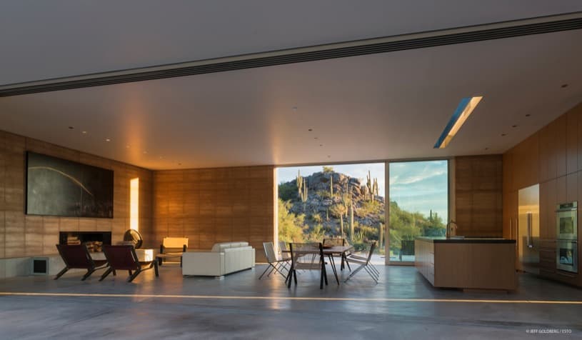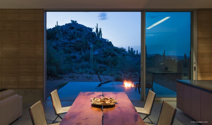 Es magnífico el diálogo que esta arquitectura realiza con la naturaleza del desierto cuando las puertas correderas están abiertas. El único aspecto que cambiaríamos está relacionado con el mobiliario, sobre todo las sillas.