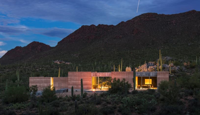 Cuando se planteó la idea de colocar una casa en esta zona del desierto de Sonora (Arizona, EE.UU.), probablemente uno de los retos con los que tuvieron que enfrentarse los arquitectos fue el de mantener el máximo respeto por el paisaje de rocas y cactus circundante. Las soluciones planteadas hicieron que la Casa Tucson Mountain la entendamos como un gran proyecto, lleno de sensibilidad y de poesía, por la forma en la que se relaciona con el exterior.