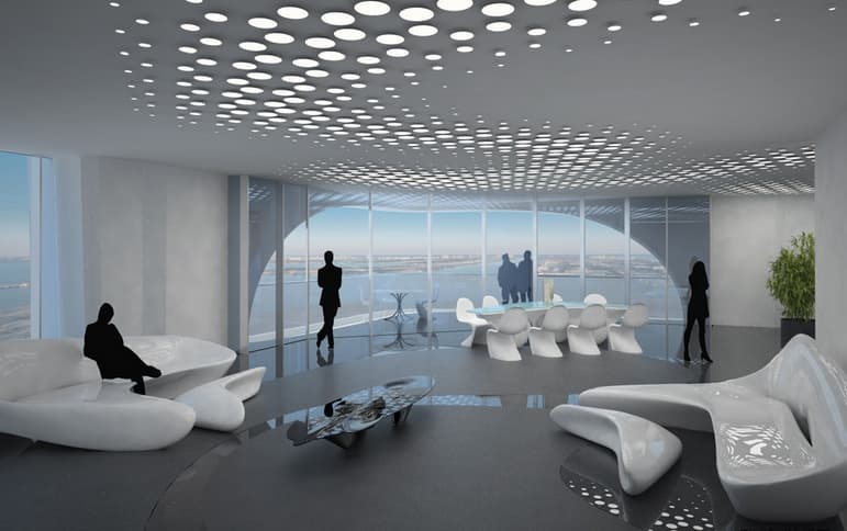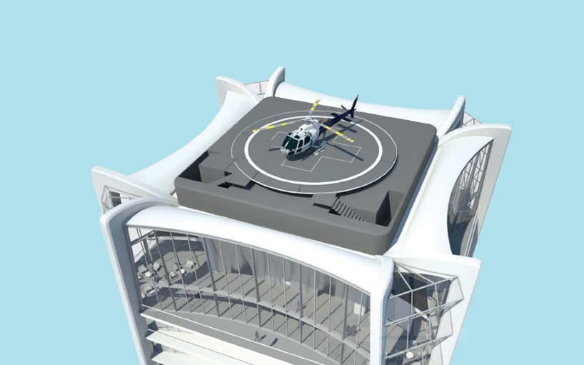 La parte superior del rascacielos está ocupada por un espacio a doble altura destinado a un centro acuático. Es todo un sky lounge que ofrece las mejores vistas sobre la ciudad de Miami y el Océano Atlántico, con fachada completamente acristalada. Estas instalaciones incluyen una piscina desbordante. En la azotea está el primer helipuerto privado residencial de la ciudad, para aquellos propietarios que prefieran ese medio de transporte.
