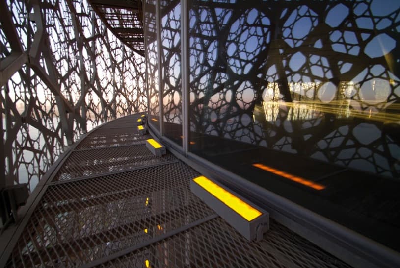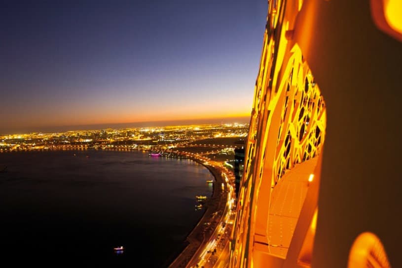 Burj Doha es un rascacielos de 232 metros de altura que está situado a la orilla del Golfo Pérsico, en la capital de Catar. Su sencilla forma cilíndrica está rematada por una cúpula y una gran aguja (pararrayos). Pero esta clara alusión a la arquitectura árabe está fortalecida por una delicada fachada formada por varias capas, creando una celosía que protege el interior del edificio de las radiaciones solares.