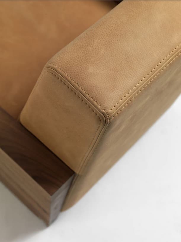 LORD es un sillón que puede venir acompañado por un reposapiés del mismo estilo y acabados. Esta pieza además incorpora un espacio oculto bajo el cojín, para utilizar como almacenamiento.