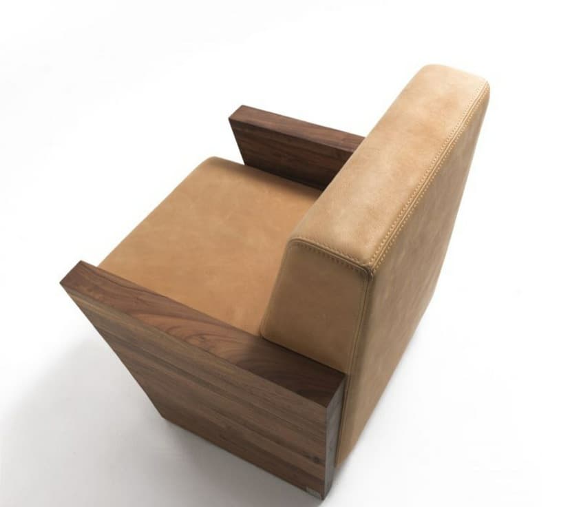 Este diseño de sillón de madera y cuero fue realizado por Davide y Maurizio Riva para la firma Riva 1920.