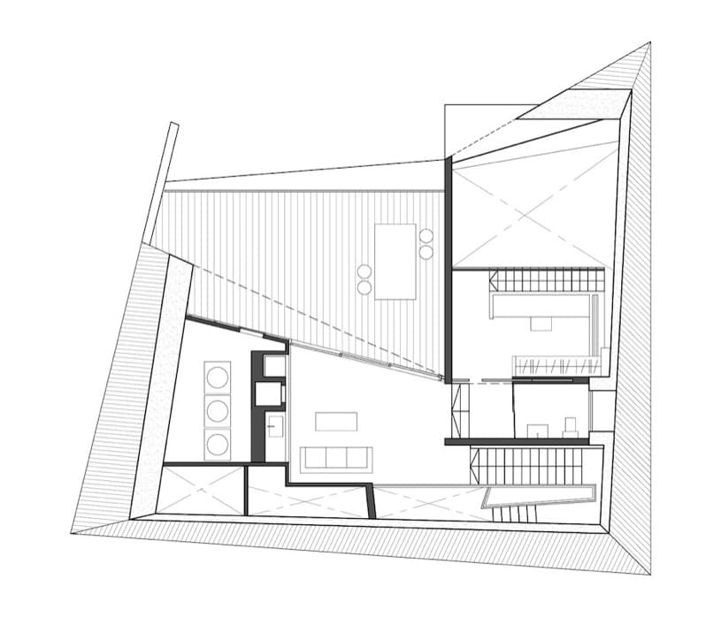 La forma de la Casa Diamante surge casi de aplicar los estrictos parámetros de edificación del área de Cove Drive (Isla de Sentosa, Singapur). Por eso se crea un volumen de muchas caras que en cierta medida recuerda al de una piedra preciosa (de ahí su nombre). El resultado final es un edificio muy singular, casi una osadía en una zona residencial aburrida, con un interior no menos interesante.
