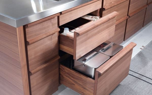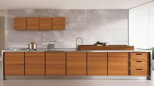 En esta ocasión la madera toma el protagonismo, aportando su calidez no solo en todos los frentes de cajones y armarios, sino también en los tiradores. Las opciones de almacenamiento también hay que tenerlas en cuenta, y en este sentido Only One no defrauda. Sus armarios y aparadores facilitan el acceso a todos los utensilios y elementos necesarios para cocinar. Nos ha llamado la atención el giro que presenta uno de sus armarios una vez abierto. Y el detalle en el acabado de todos sus elementos. Eso sí, preferimos (y recomendamos) la opción de fregadero integrado en la encimera de acero inoxidable, en vez de la versión en madera.