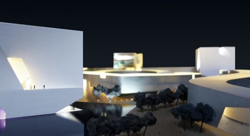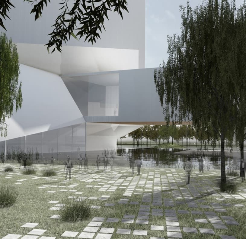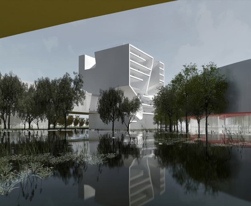 El proyecto tiene una superficie de 185.000m2, sobre los terrenos de una nueva extensión urbana que albergará a una población de 700.000 habitantes. Su diseño refleja una original idea desarrollada según un trazado serpenteante que conecta tres volúmenes cúbicos.