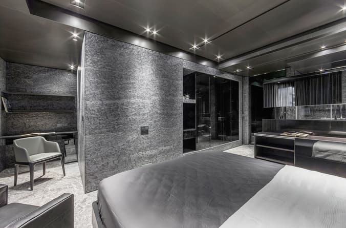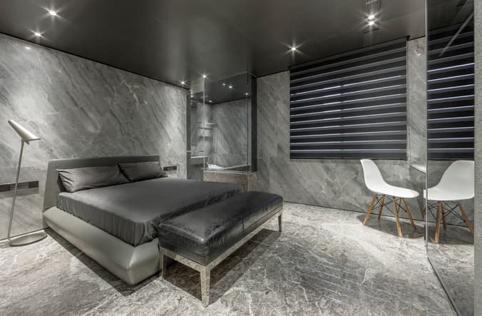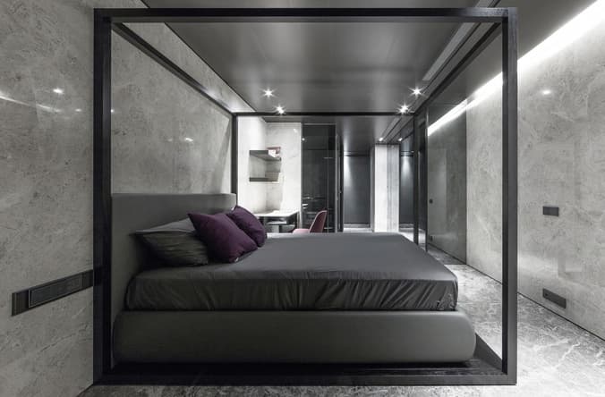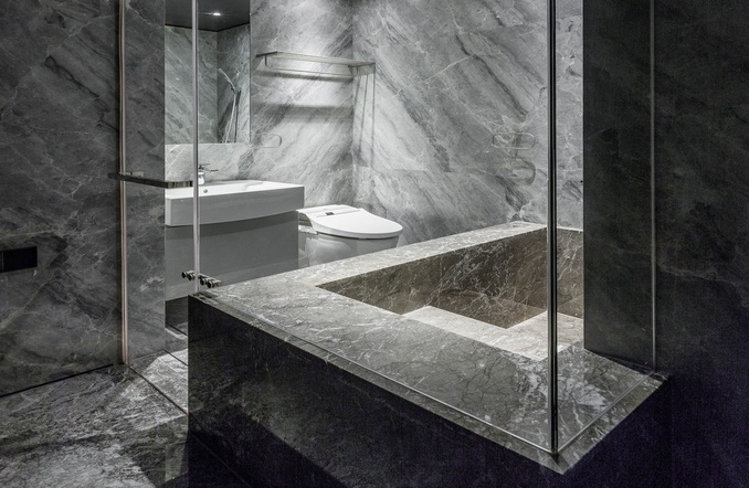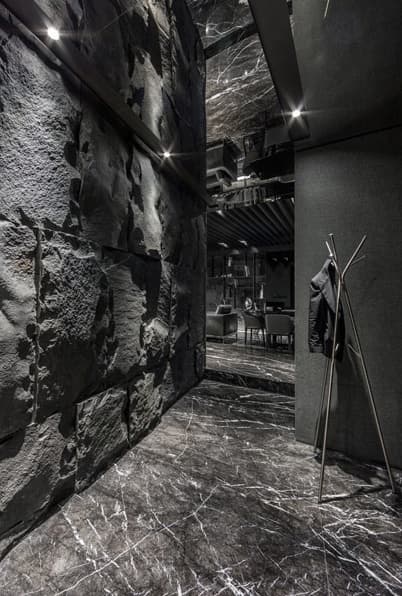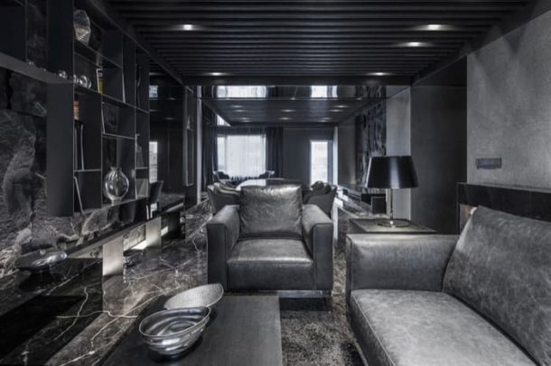 La Residencia Song es otro de esos experimentos que puede hacer cambiar nuestros criterios en lo que a decoración de apartamentos se refiere. Es una solución mucho más lujosa y sofisticada que la Casa Rosa Muerta. Pero ambas tienen en común una decoración en negro. En este apartamento se han utilizado diferentes revestimientos de piedra natural, según las funciones de la casa. También vemos muebles y acabados en tonos oscuros, haciendo uso además del contraste entre superficies pulidas y rugosas.