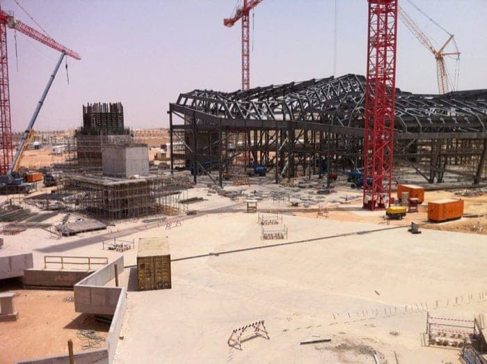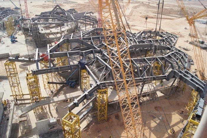 En las diferentes fotografías tomadas de la obra (más abajo), se aprecia una imponente (y compleja) estructura de acero. Pro este centro de investigación también se está construyendo con hormigón armado.