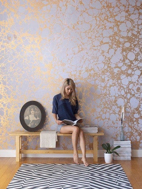 Hay más información de este papel metalizado en el sitio de Calico Wallpaper.