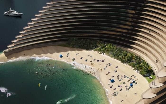 Además del atractivo de estas formas orgánicas, que están inspiradas en la naturaleza, también tiene su importancia la conexión entre los edificios. Se hace mediante caminos rodados, parques, y calles peatonales. Las medias «lunas» que hay en el mar son de tres tipos y tamaños. Las más pequeñas son residencias privadas; las medianas están ocupadas por hoteles accesibles por mar, carretera, y aire; mientras que las más grandes pueden ser apartamentos y hoteles.
