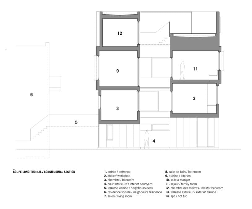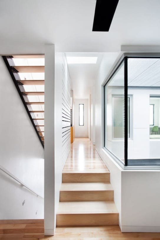 Stacked House es el proyecto de una vivienda entre medianeras, situada en el barrio Plateau de Montreal (Canadá). Se diseñó en colaboración con un cliente que quería construir su propia casa. Desde la calle tiene la apariencia de estar formada por la yuxtaposición de varias cajas apiladas, cada una de ellas de un material diferente. Hay un patio central interior que aporta más luz natural a las habitaciones, a la vez que da privacidad a la vida al aire libre.