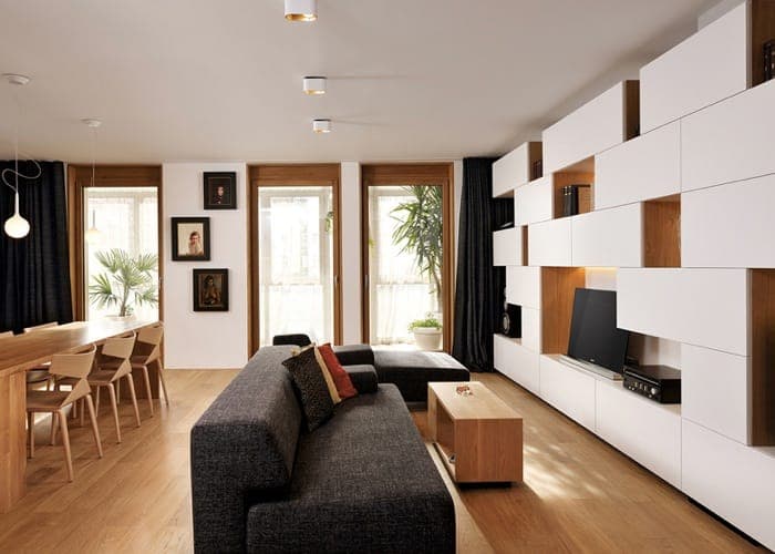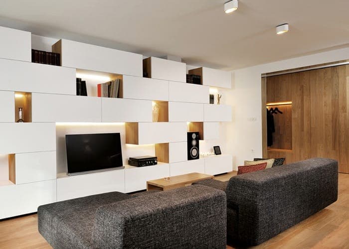 El nombre de Geometric Residence se corresponde con la reforma de un apartamento de 100m2 situado en un edificio residencial de Liubliana (Eslovenia). En él los arquitectos no alteraron la distribución, pero sí modificaron por completo su decoración, dándole a cada habitación un carácter diferente. Principalmente utilizaron estanterías de geometría simple y nuevos revestimientos.