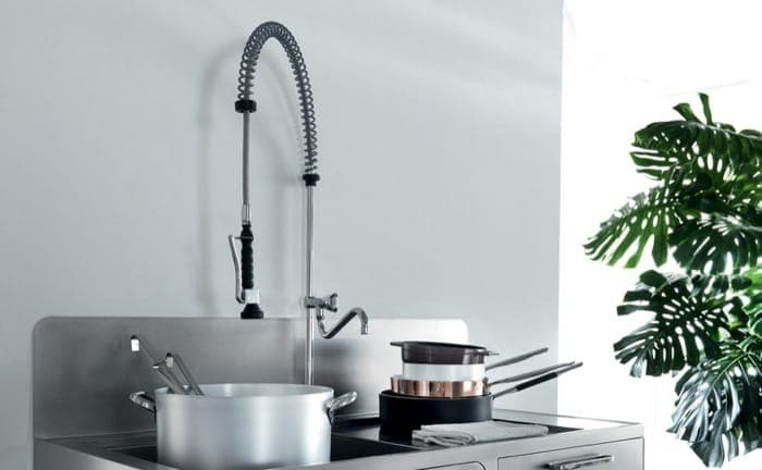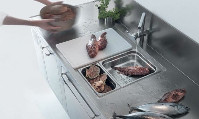 Estos muebles fueron diseñados por el arquitecto Alberto Torsello, para la firma italiana Abimis. La intención era llevar al hogar una cocina de restaurante, pues está diseñada al más mínimo detalle, para que sea más fácil el proceso de cada una de las cinco fases que suceden en la cocina: conservar, preparar, cocinar, presentar, y lavado.