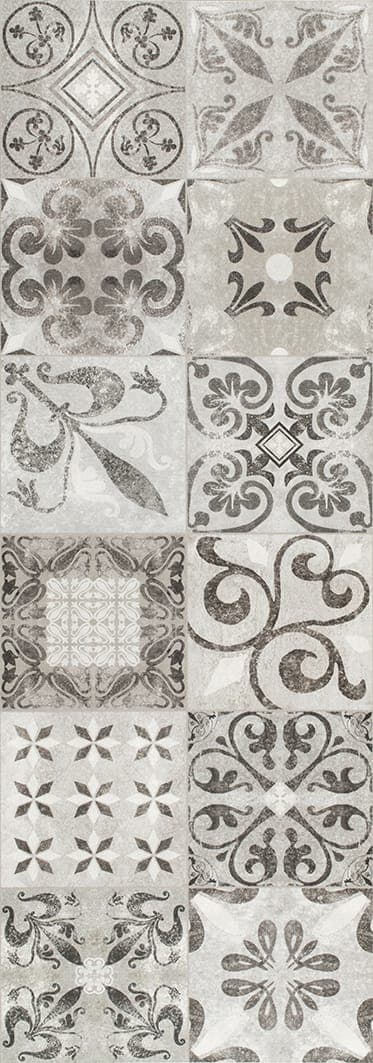 Este gres hidráulico ofrece un diseño que ilustra muy bien el estilo de antaño, en diferentes versiones, según tonalidades y patrones. Las piezas de las versiones Acero, Black, y Silver tienen unas medidas de 59,6 x 59,6cm, mientras que los modelos Blue, Brown, y Grey vienen en un formato rectangular de 31,6 x 90cm. El espesor de todas ella está entre 9-10mm aproximadamente.