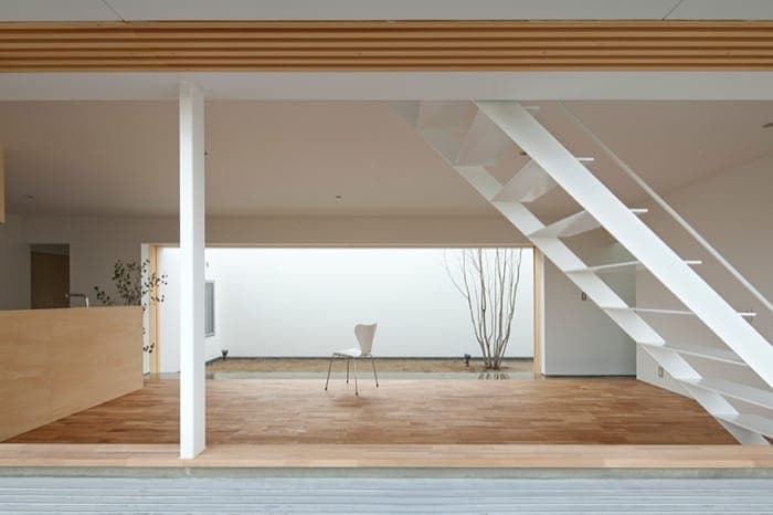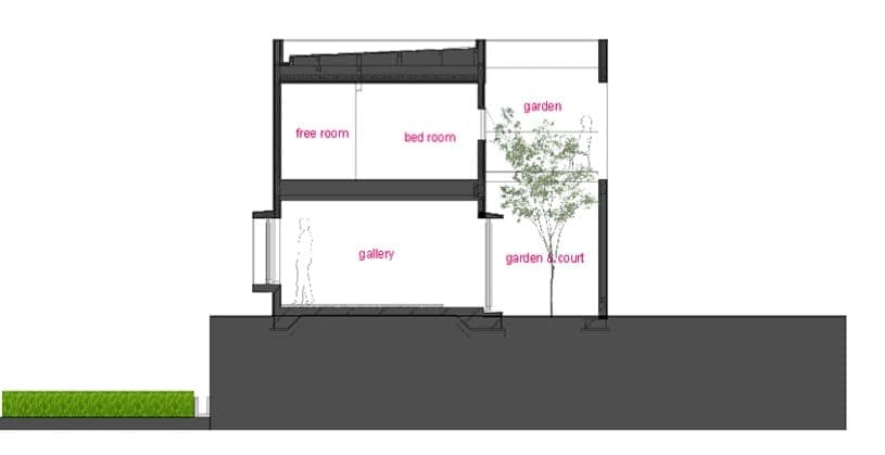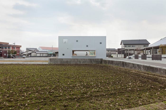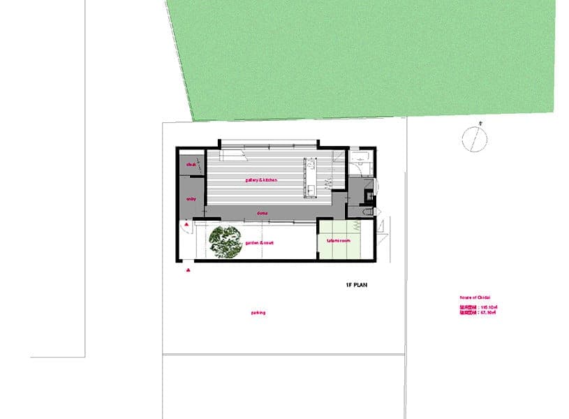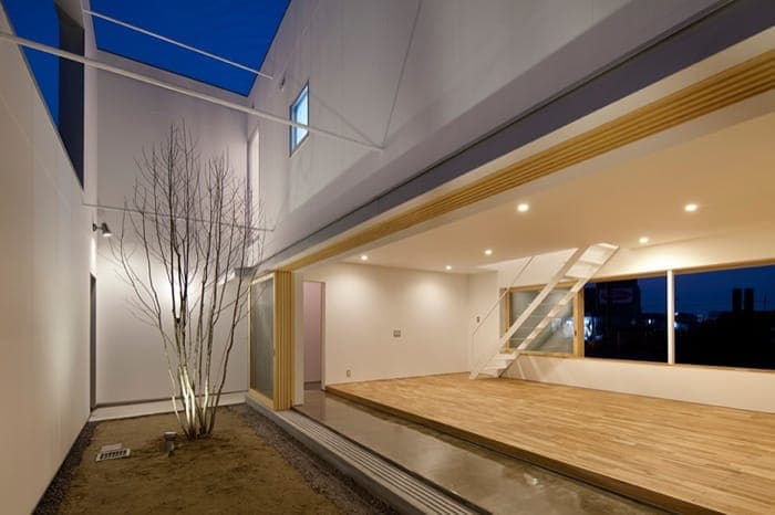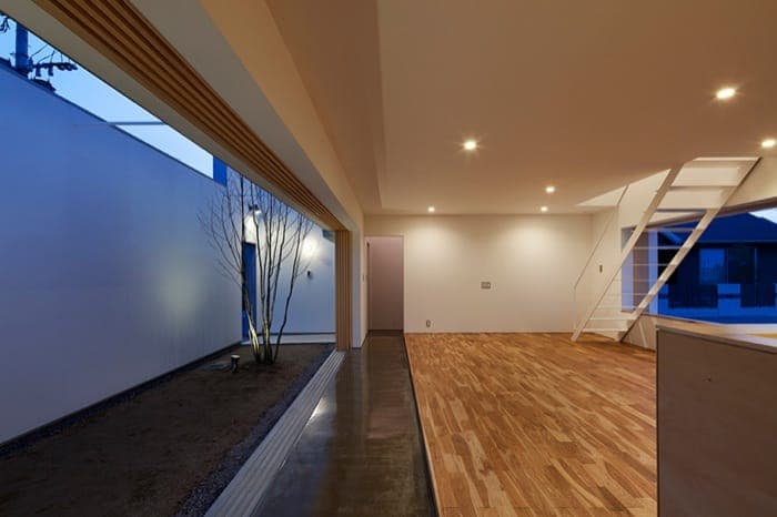 La Casa Cueva (Cave House) se encuentra en un barrio no muy denso de Oita (Japón). Está dentro de una parcela casi cuadrada, y sin el acoso de viviendas vecinas (al menos por ahora). Pero aún así se resolvió con un patio interior lateral y alargado, que divide la casa en prácticamente dos mitades, al tiempo que proporciona espacio más privado al aire libre.