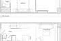 El apartamento tiene dos cuartos de baño. Uno está justo en la entrada y otro en el piso de arriba (dormitorio), ambos decorados en blanco, al igual que la cocina. Para no impedir el paso de la luz natural, al tiempo que se guarda la privacidad, se han utilizado paneles de vidrio arenado en el pretil del dormitorio. La pared del cabecero de la cama está pintada en un azul eléctrico, que queda bastante bien. Eso añade una nota más de color en este moderno apartamento.