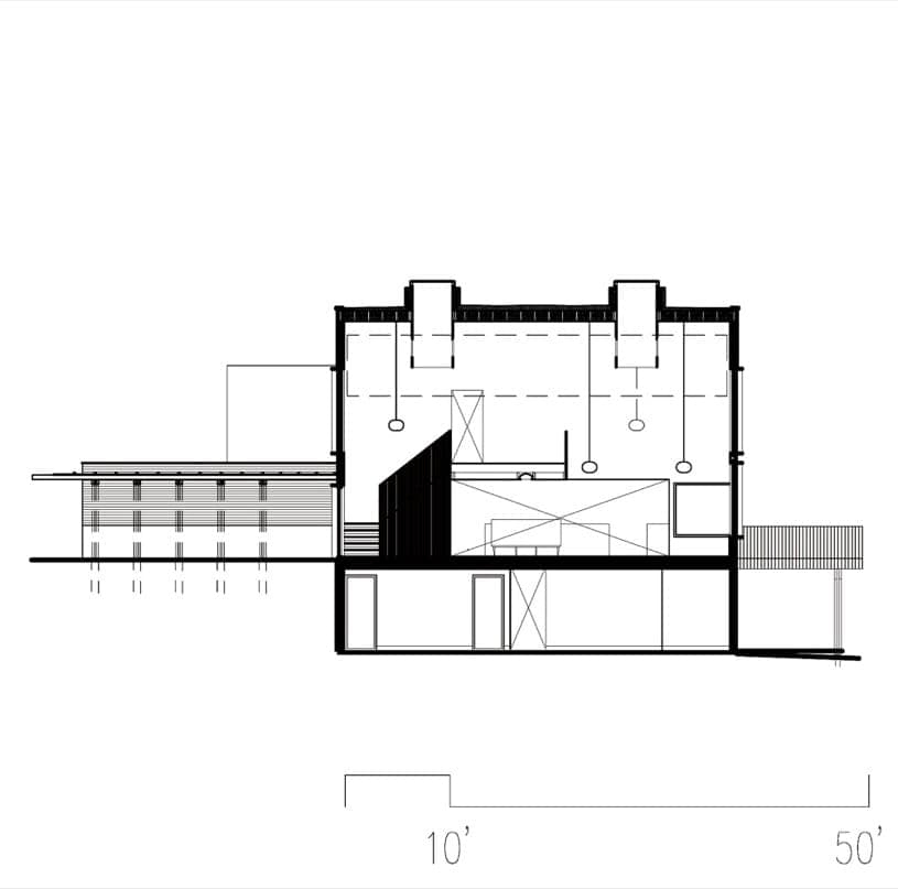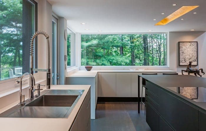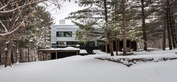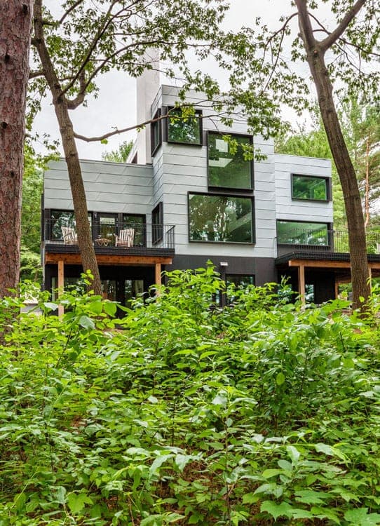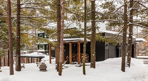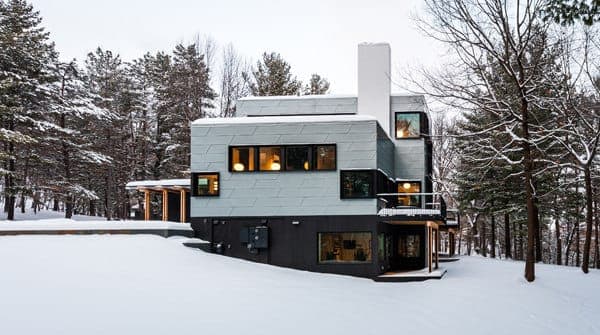 La Casa Koosmann está revestida de zinc y paneles de richlite negro, que es un material de alta densidad hecho a partir de papel parcialmente reciclado y resina fenólica.