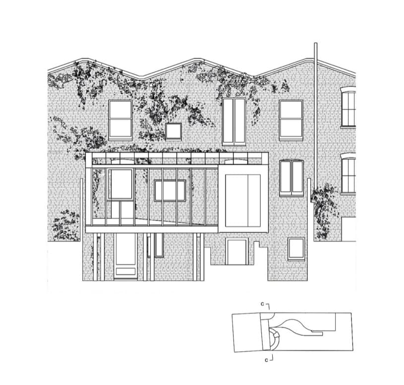 La Casa del Árbol no tiene nada que ver con una construcción colgada/apoyada en un árbol, pero sí con el jardín de una antigua vivienda del barrio de Whitechapel (Londres). Allí vivía una madre discapacitada y dependiente de una silla de ruedas. La vivienda existente estaba formada por dos pequeñas casas adosadas del siglo19, que en la década de 1970 se unieron. Pero las habitaciones en la planta baja estaban a distintos niveles, y también a distinta cota del jardín del patio trasero.