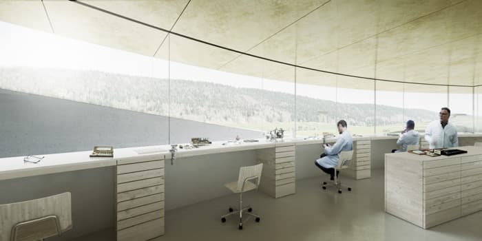 La marca suiza Audemars Piguet desde 1875 se dedica a fabricar relojes de lujo con complejos mecanismos. Decidió fortalecer su imagen ampliando su sede con un proyecto de Bjarke Ingels Group (BIG). Un antiguo edificio, situado en el extremo occidental de Suiza (Le Brassus), es ampliado con el museo La Maison des Fondateurs. Posee una estructura en espiral que parece emerger del suelo, e incluye espacios expositivos, de taller, y una casa para huéspedes.