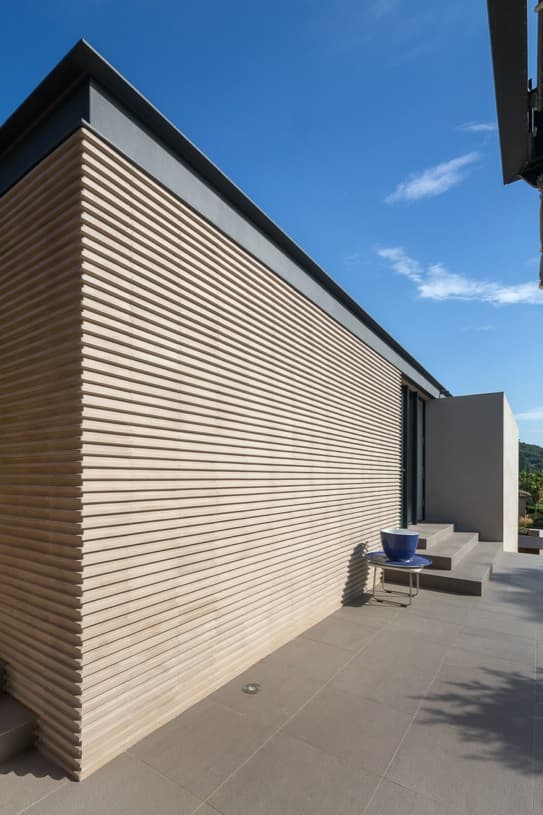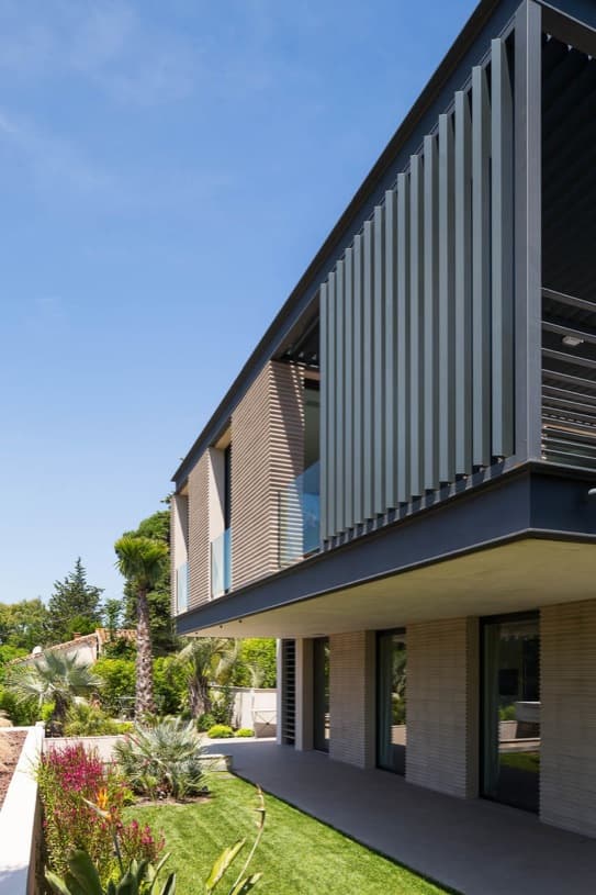 Maison H3 es una vivienda unifamiliar construida en una parcela rectangular de un barrio residencial de Saint-Tropez (Francia). El cliente era la propietaria de una galería local y su esposo, para quienes se diseñó además un tipo de plaqueta de terracota. Con ella se revistió parte del piso superior, creando una interesante textura de sombras con las pérgolas y celosías añadidas.