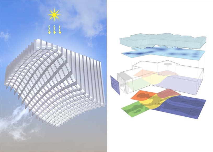 En el suelo hay distribuidos diferentes iconos informativos para sus visitantes; determinadas ubicaciones de almacenamiento ocultas en las paredes (taquillas); un ‘pozo de luz’ en el techo para iluminar la piscina, con un cuidado método de iluminación interior mediante la refracción de la luz. También se merece un vistazo el diseño de los cuartos de baño, y el sistema de refrigeración (inspirado en los termiteros).