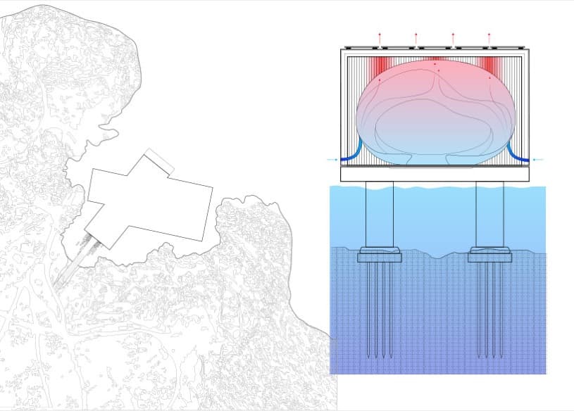 Estos renders son de un concepto de edificio para utilizar como centro de exhibición de las técnicas de buceo, para la ciudad búlgara de Tsarevo, cerca de Burgas. El objetivo era promocionar los deportes acuáticos en instalaciones públicas situadas en el mar.