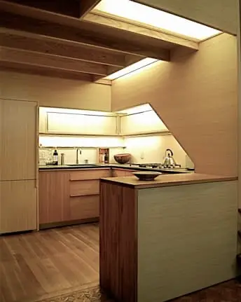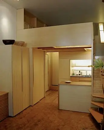 En un edificio del Upper West Side de Manhattan había un diminuto apartamento de 22m2 que estaba en un estado lamentable, al que su propietario (un profesor universitario) quería arreglar. La solución se inspiró en el trabajo artesanal de los maestros carpinteros japoneses, especialmente en George Nakashima.