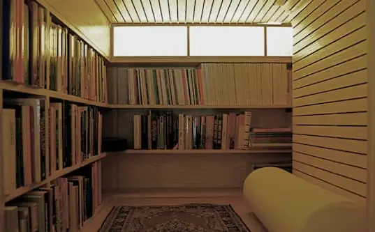 Hay dos bibliotecas para guardar libros, una en la planta inferior, y la otra en el loft. Ésta última está ubicada junto a la cama, como una hornacina, con el techo forrado de tablillas de madera de arce, y por supuesto con las medidas suficientes para meterse dentro y poder leer.
