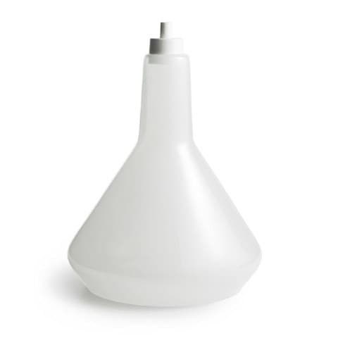 Con esta lámpara los diseñadores han conseguido crear una solución completa en iluminación, pensando en el modelo Plumen 001. La pantalla está hecha con vidrio soplado a mano, y tiene la transparencia perfecta para dejar ver la forma escultórica de la bombilla. Es muy fácil de instalar, ya que simplemente hay que dejarla apoyada sobre el elemento colgante de Plumen que antes hemos mencionado, pudiendo utilizar un cable en el mismo color que la pantalla (ámbar, negro, y blanco).