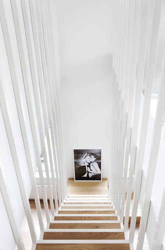 La zona de vida (sala, comedor, y cocina) se organiza en un gran espacio diáfano situado en el nivel inferior, pero la clave aquí estaba en la escalera, un nuevo elemento imprescindible en las obras de remodelación que no debía romper la armonía de la planta inferior, ni tampoco oscurecerla. La solución consistió en una liviana estructura metálica colgada del techo, trazada para dividir mínimamente el comedor del salón.