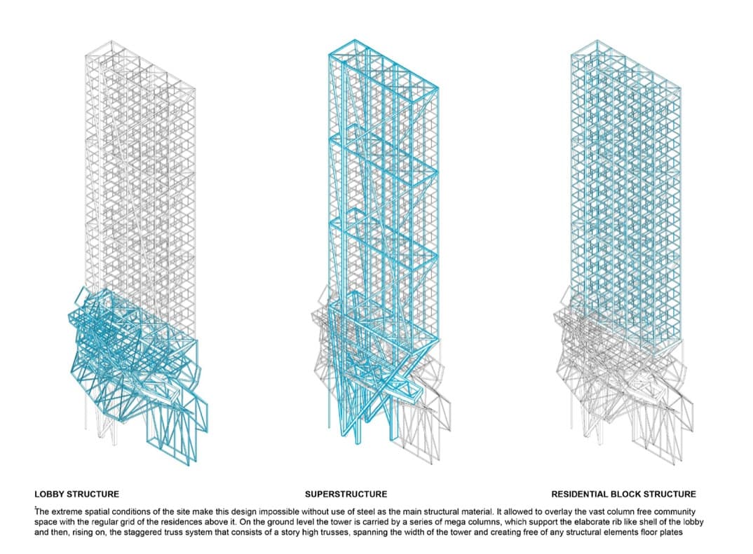 (*): El concurso estaba respaldado por Metropolis Magazine, Steel Institute of New York, y Ornamental Metal Institute of New York. Este diseño fue realizado por Airat Khusnutdinov y Zhang Liheng.